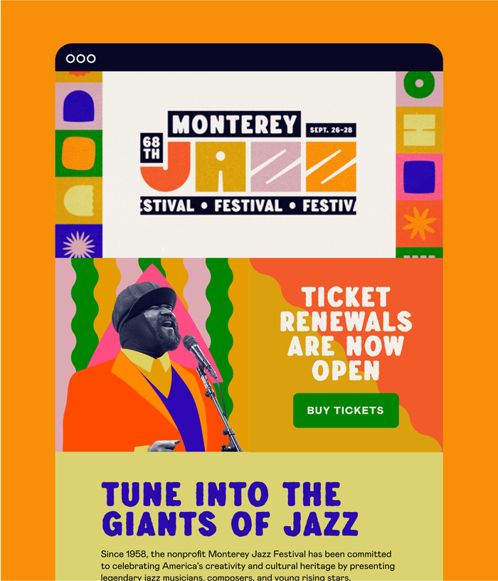 An immersive marketing campaign promoted the 2025 festival experience across touchpoints in a strategic, coordinated push, ensuring maximum visibility and sparking audience interest. Key efforts included high-conversion email design, engaging social graphics, high-impact out-of-home placements, and strong promotion of the event’s souvenir program. The full campaign captured the sights, sounds, and energy of the 2025 Monterey Jazz Festival, reinforcing its position as a legendary, must-see event.
